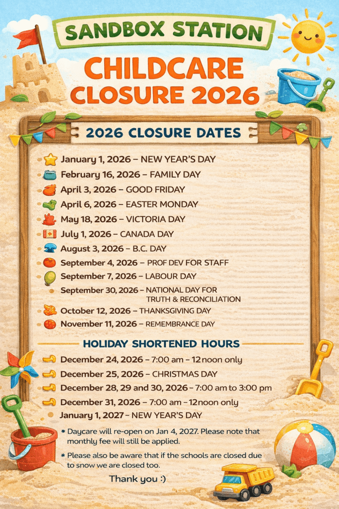 Thank you for your continued support and partnership with Sandbox Childcare. We truly appreciate your trust in us and look forward to sharing a wonderful winter season filled with learning, laughter, and snowy fun! βοΈβ